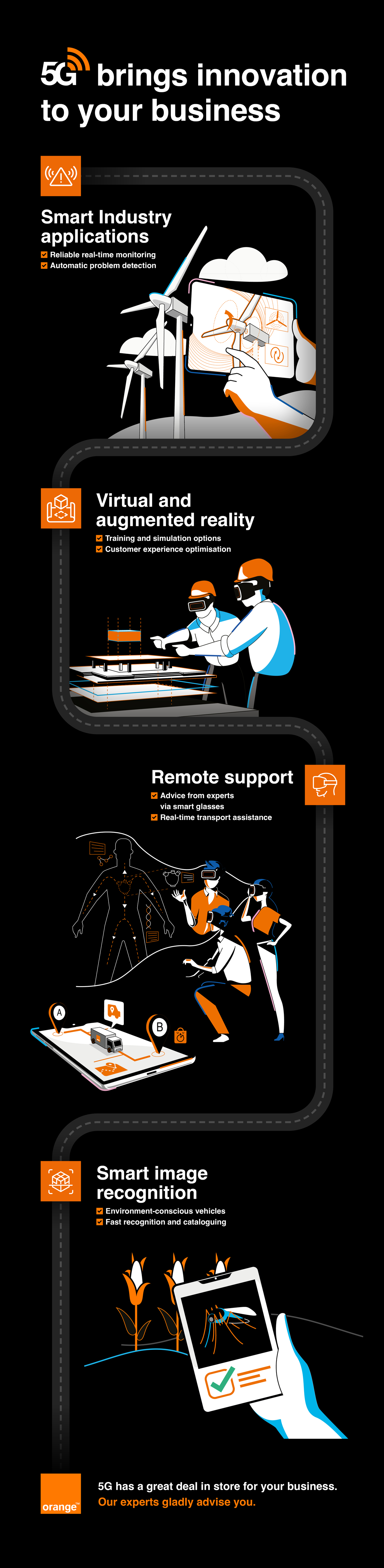 5G is clearly so much more than just technology: it paves the way to the future. In 2019 Orange was the first mobile operator in Belgium to launch a standalone 5G network in the port of Antwerp. Since then we have supported countless businesses in their digital transformation. Our experts are ready to usher your business into the 5G age too.