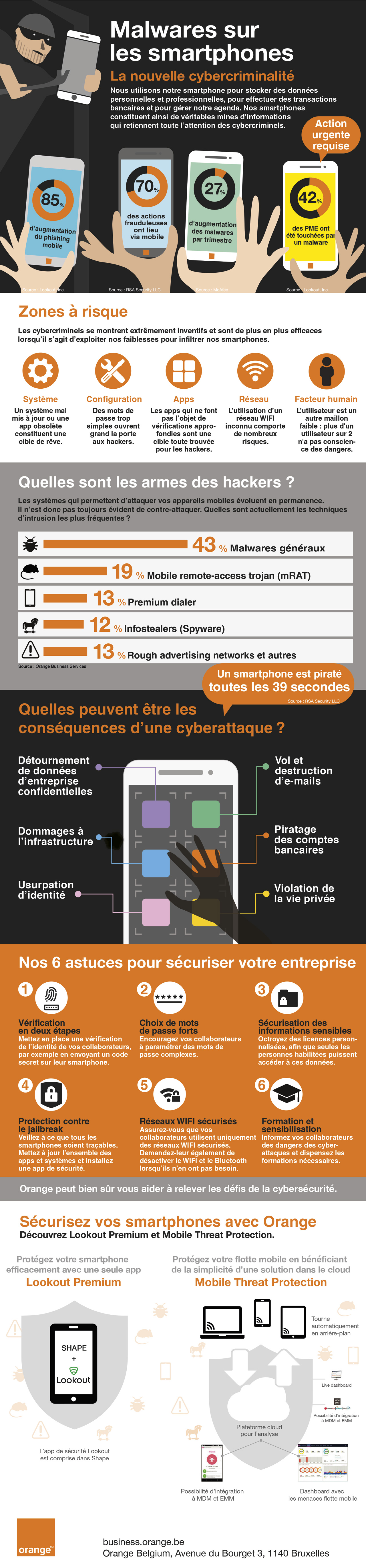 Orange entend mettre un terme à cette nouvelle forme de criminalité et offre l’app mobile de sécurité Lookout Premium avec tout abonnement Shape. Cette app scanne votre appareil et vos données et vous avertit en cas de menace potentielle.