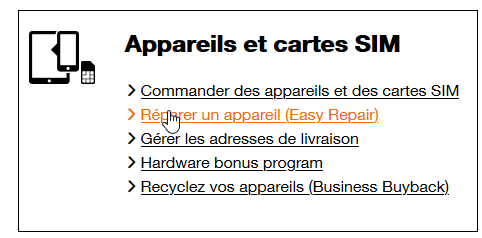 Vous pouvez demander la réparation d’un appareil via Easy Repair dans l’espace client :
