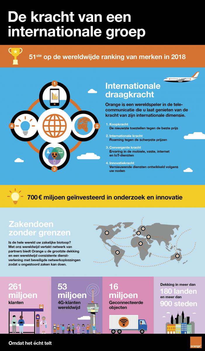 Orange prijkt als 51ste in de lijst van alle merken ter wereld, over alle sectoren heen. We zijn dan ook niet bepaald een kleine speler op het wereldtoneel. Maar genoeg over ons. Welke voordelen haalt u uit deze internationale draagkracht?