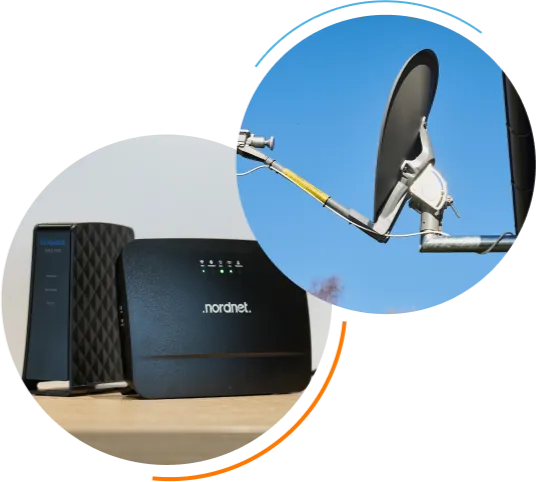 Orange Satellite met Nordnet is aanbevolen voor locaties die geen toegang hebben tot glasvezel* en die onvoldoende hoge snelheden halen met HFC**. Het is een pakket met: