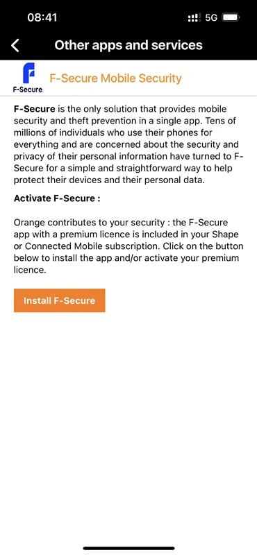 Dankzij een exclusieve samenwerking tussen Orange en F-Secure, kunnen we u de activering en gebruik van de mobiele app aanbieden bij onze Shape en Connected Mobile-abonnementen.