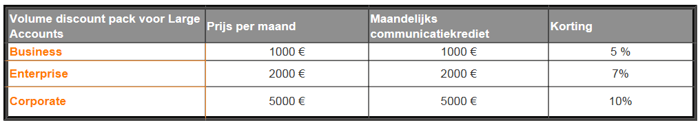 Wanneer u een minimumbedrag betaalt voor uw 0800-nummer, moet u de maandelijkse kost per nummer niet betalen en geniet u bovendien van een korting op de communicatiekosten: